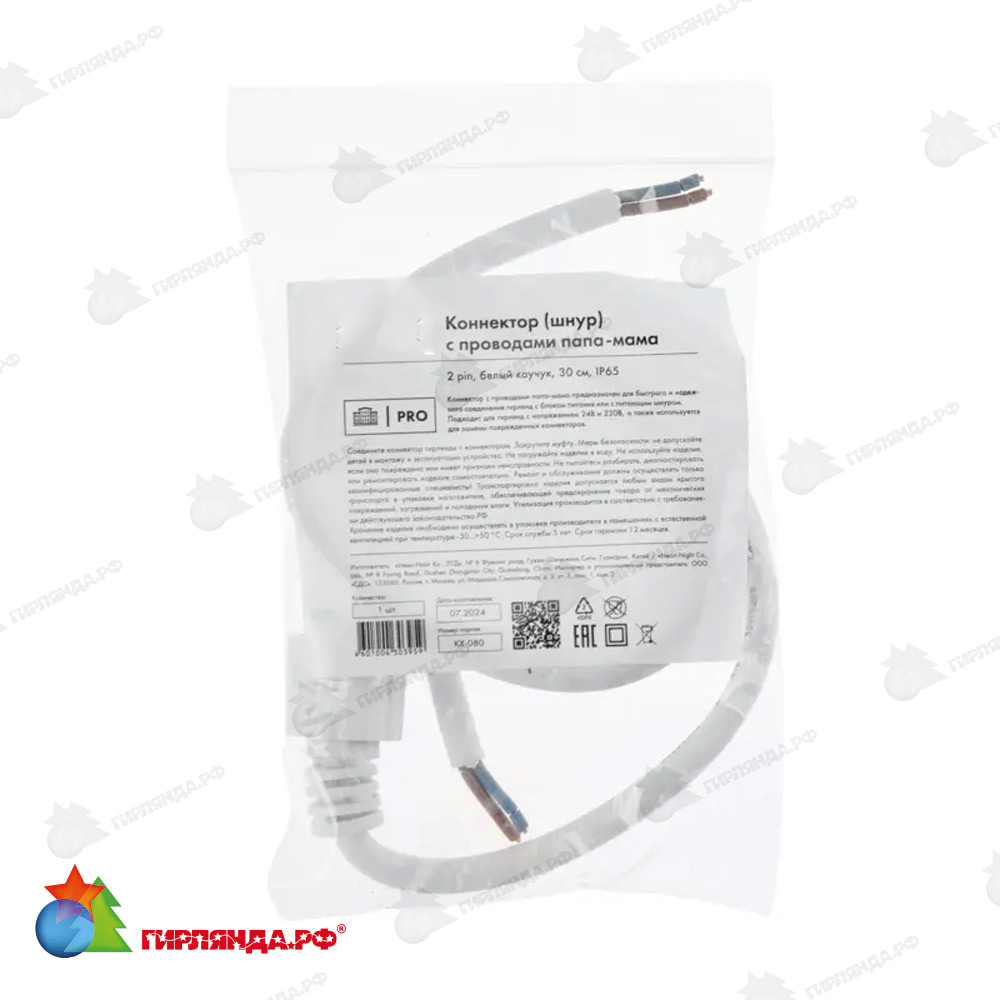 - ✅ Коннектор (шнур) с проводами папа-мама, 2 pin, белый каучук 14-2545 купить в Москве