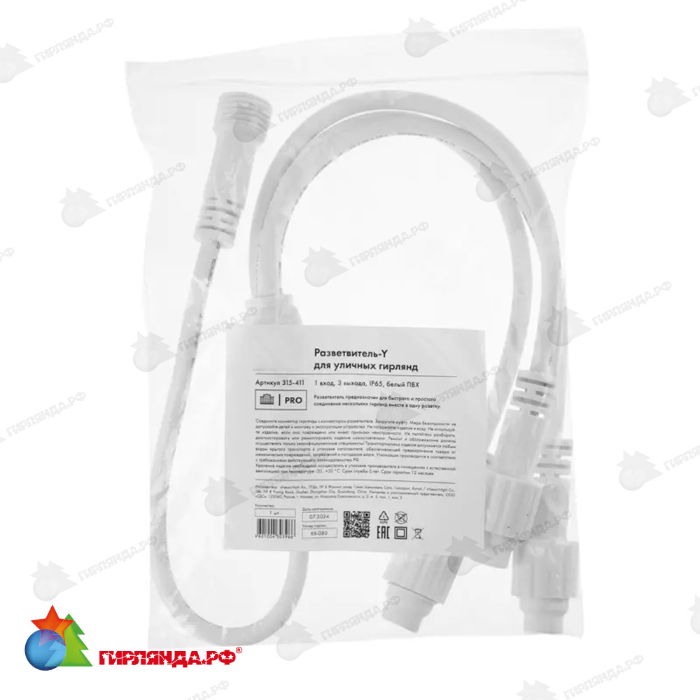 - ✅ Разветвитель-Y (шнур) для уличных гирлянд (1 вход, 3 выхода) белый пвх 14-2552 – цена 846.3 руб.