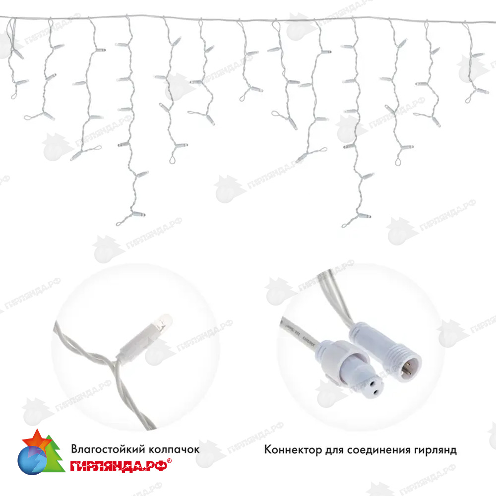 - ✅ Гирлянда светодиодная Бахрома (Айсикл) 4,8х0,6м 176 Led Теплый Белый белый пвх IP65 эффект мерцания 230В 14-2134 купить в Москве