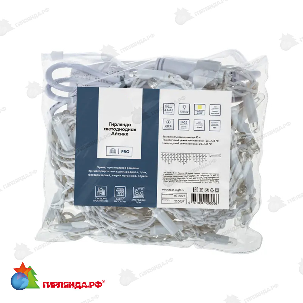 - ✅ Купить гирлянда светодиодная бахрома (айсикл) 4,8х0,6м 176 led теплый белый белый пвх ip65 эффект мерцания 230в 14-2134 в интернет-магазине недорого