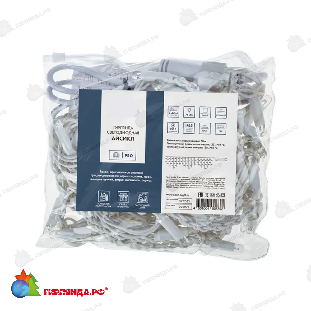 - ✅ Гирлянда светодиодная Бахрома (Айсикл) 2,4х0,6м 76 Led Холодный Белый пвх IP65 постоянное свечение 230В 14-2097 купить в Москве