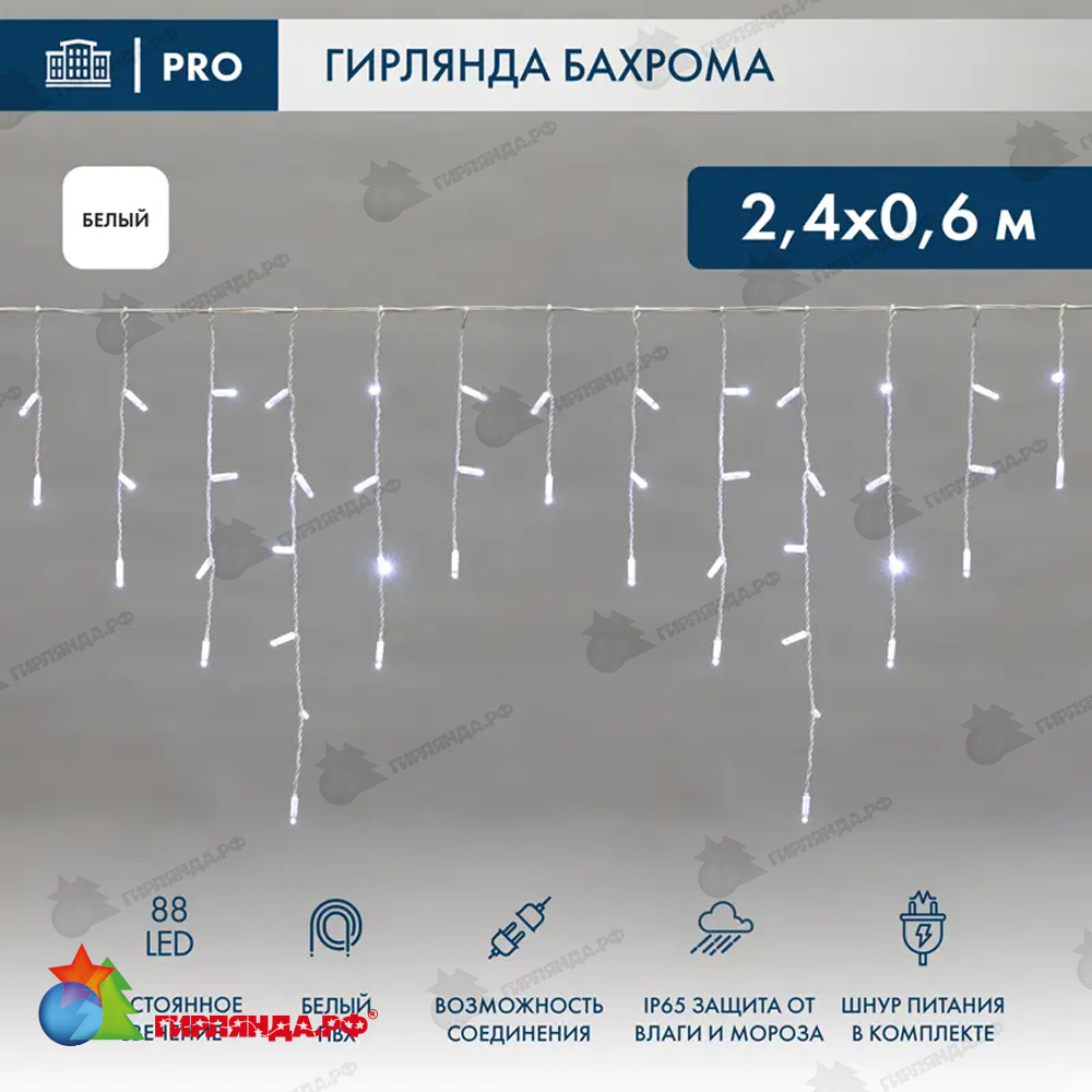 - ✅ Гирлянда светодиодная Бахрома (Айсикл) 2,4х0,6м 88 Led Холодный Белый пвх IP65 постоянное свечение 230В блок в комплекте 14-2100 – цена 2120.4 руб.