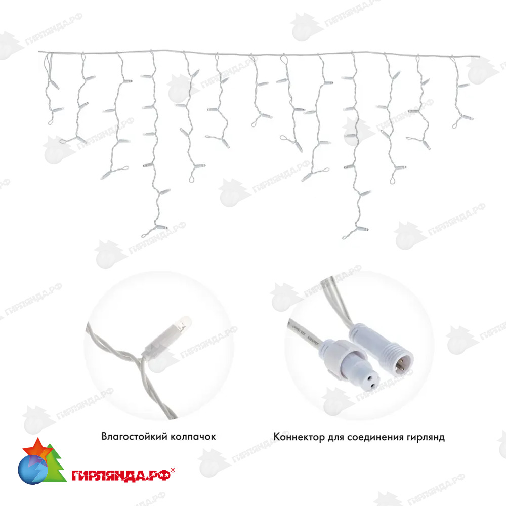 - ✅ Гирлянда светодиодная Бахрома (Айсикл) 2,4х0,6м 88 Led Холодный Белый пвх IP65 эффект мерцания 230В 14-2101 купить в Москве