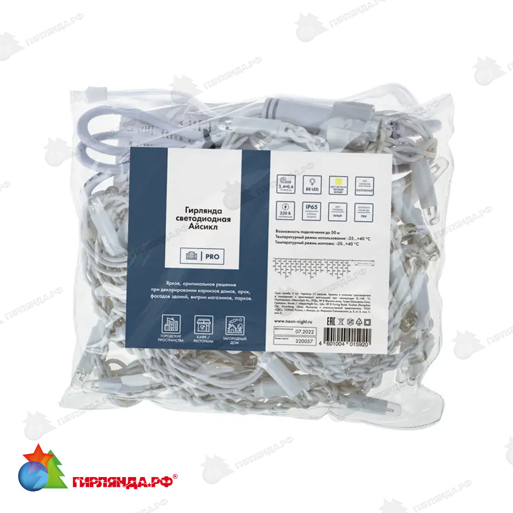 - ✅ Купить гирлянда светодиодная бахрома (айсикл) 2,4х0,6м 88 led теплый белый белый пвх ip65 эффект мерцания 230в 14-2110 в интернет-магазине недорого