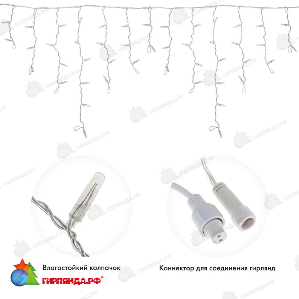 Описание гирлянда светодиодная Бахрома (Айсикл) 2,4х0,6м 88 Led Теплый Белый прозрачный пвх IP65 постоянное свечение 230В 14-2111