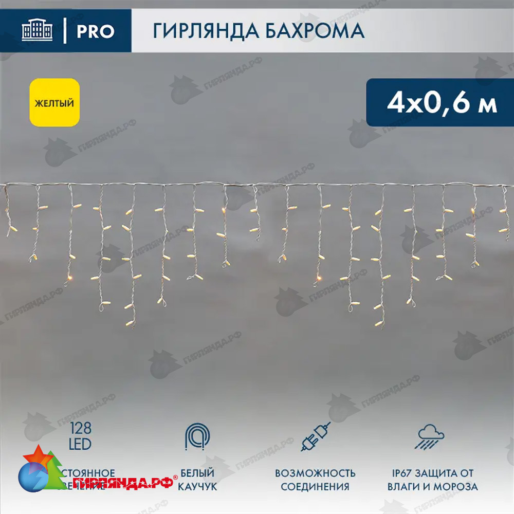 - ✅ Купить гирлянда светодиодная бахрома (айсикл) 4х0,6м 128 led желтый белый каучук 2,3мм ip67 постоянное свечение 230в 14-2150 в интернет-магазине недорого