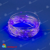 Описание гирлянда светодиодная на батарейках, «Роса», 10м. 100 LED. Фиолетовый свет. Провод медный. 10-3838