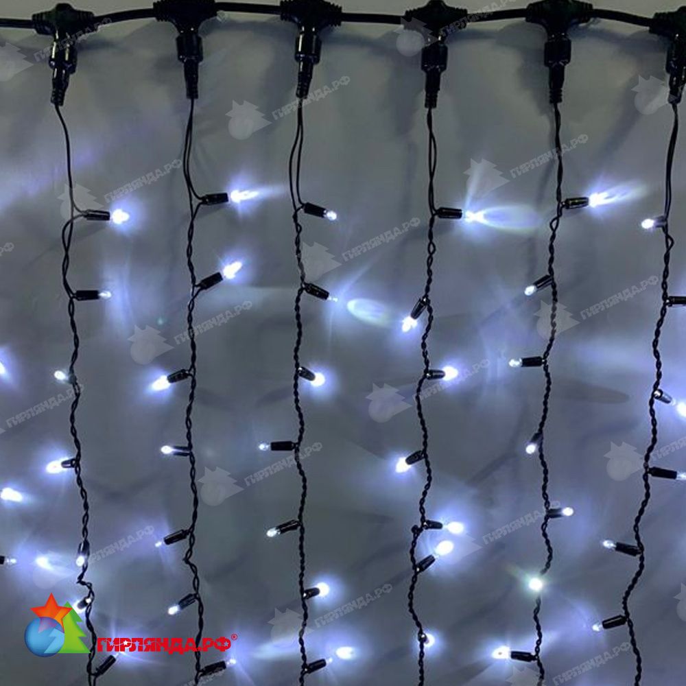 - ✅ Гирлянда светодиодный занавес, 2х1,5м., 380 LED, холодный белый, без мерцания, черный провод (пвх), с защитным колпачком. 13-1310 – цена 6930 руб.