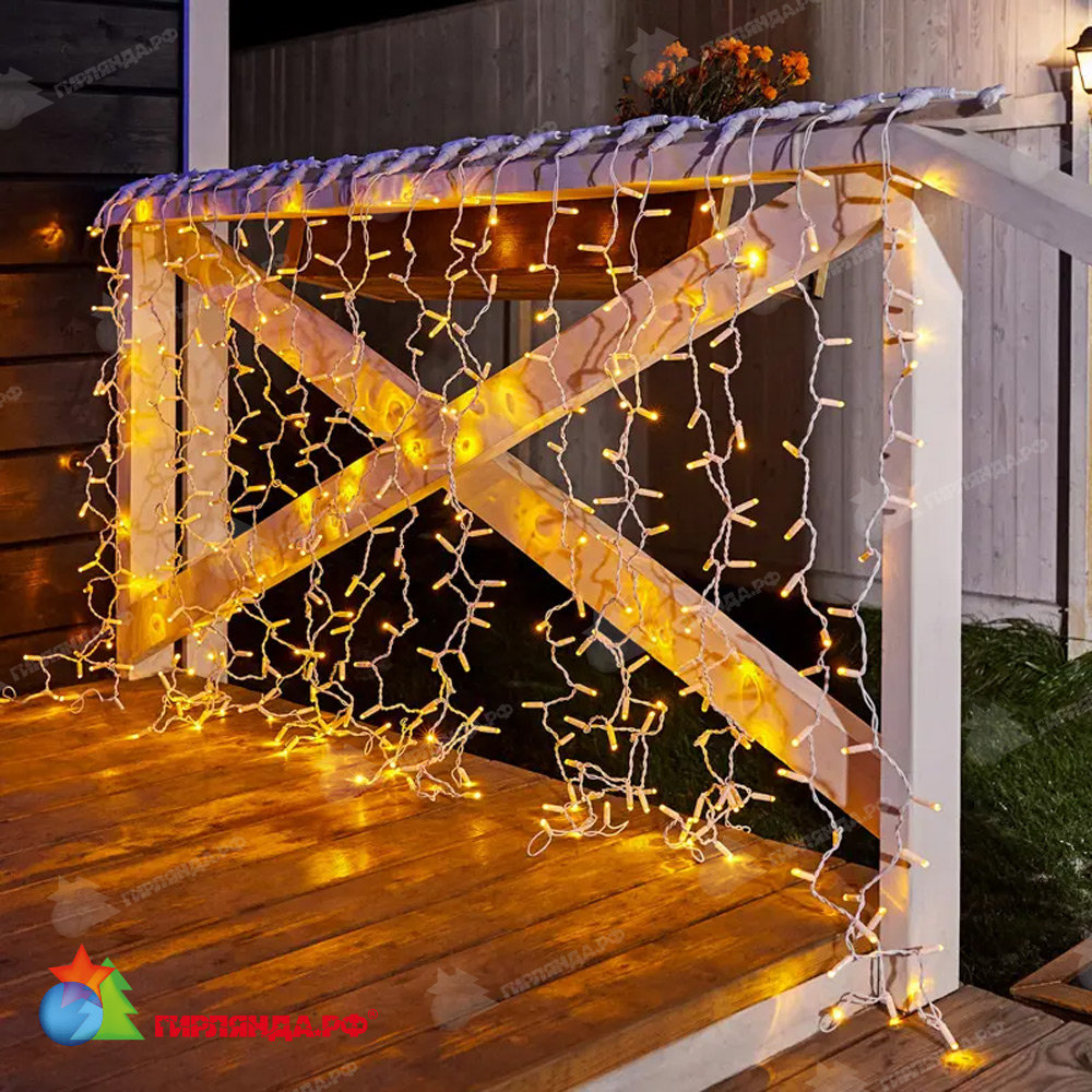 Описание гирлянда светодиодная Занавес 2х1,5м 360 Led Желтый белый пвх IP65 постоянное свечение 230В блок в комплекте 14-2030