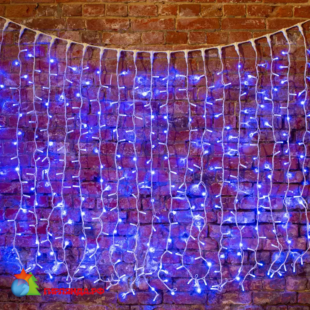 Описание гирлянда светодиодная Занавес 2х1,5м 360 Led Синий белый каучук IP67 постоянное свечение 230В блок в комплекте 14-2091