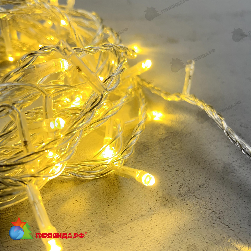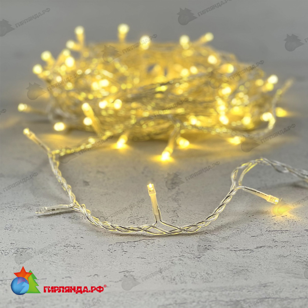 Описание гирлянда Нить 10м Золотой с Мерцанием Теплый Белый диод 24В, 100 LED, провод Прозрачный ПВХ, IP54 04-5358