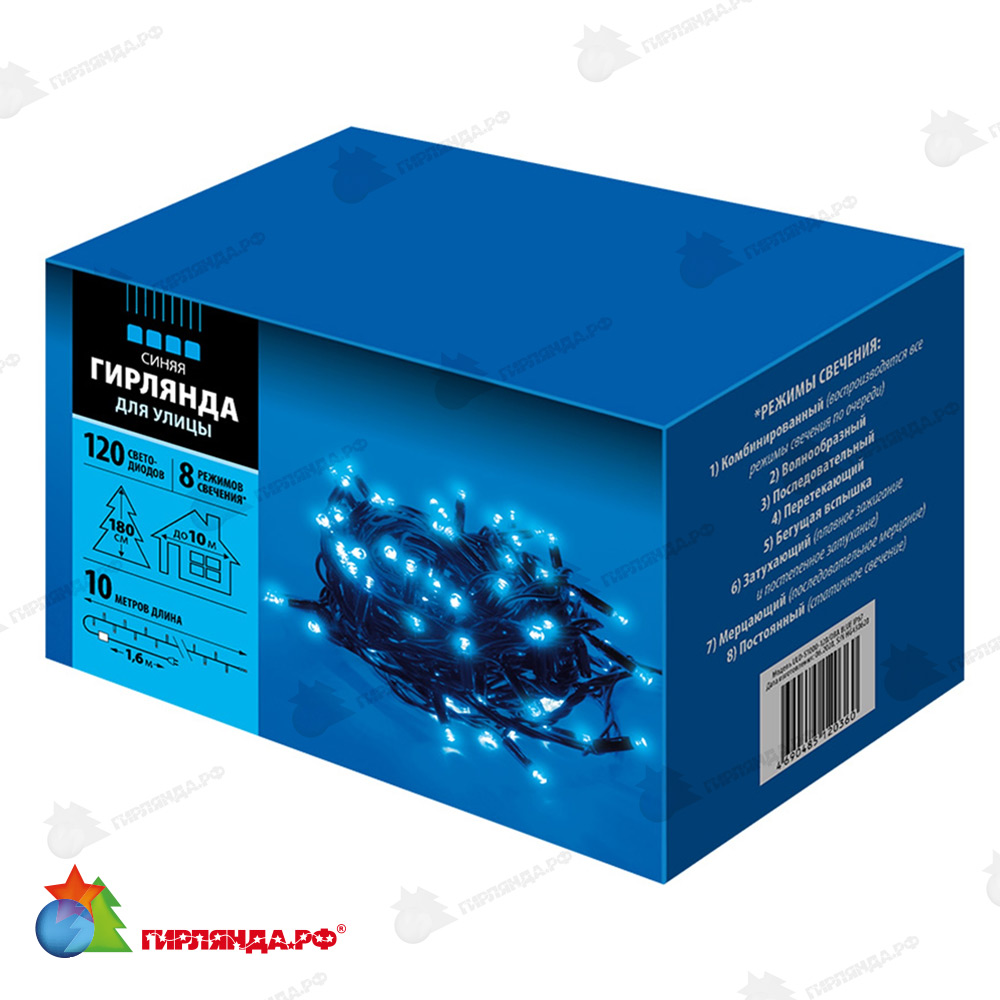 - ✅ Купить гирлянда нить 10 м., 120 led, синий, с контроллером, черный резиновый провод (каучук), с защитным колпачком. 10-3787 в интернет-магазине недорого