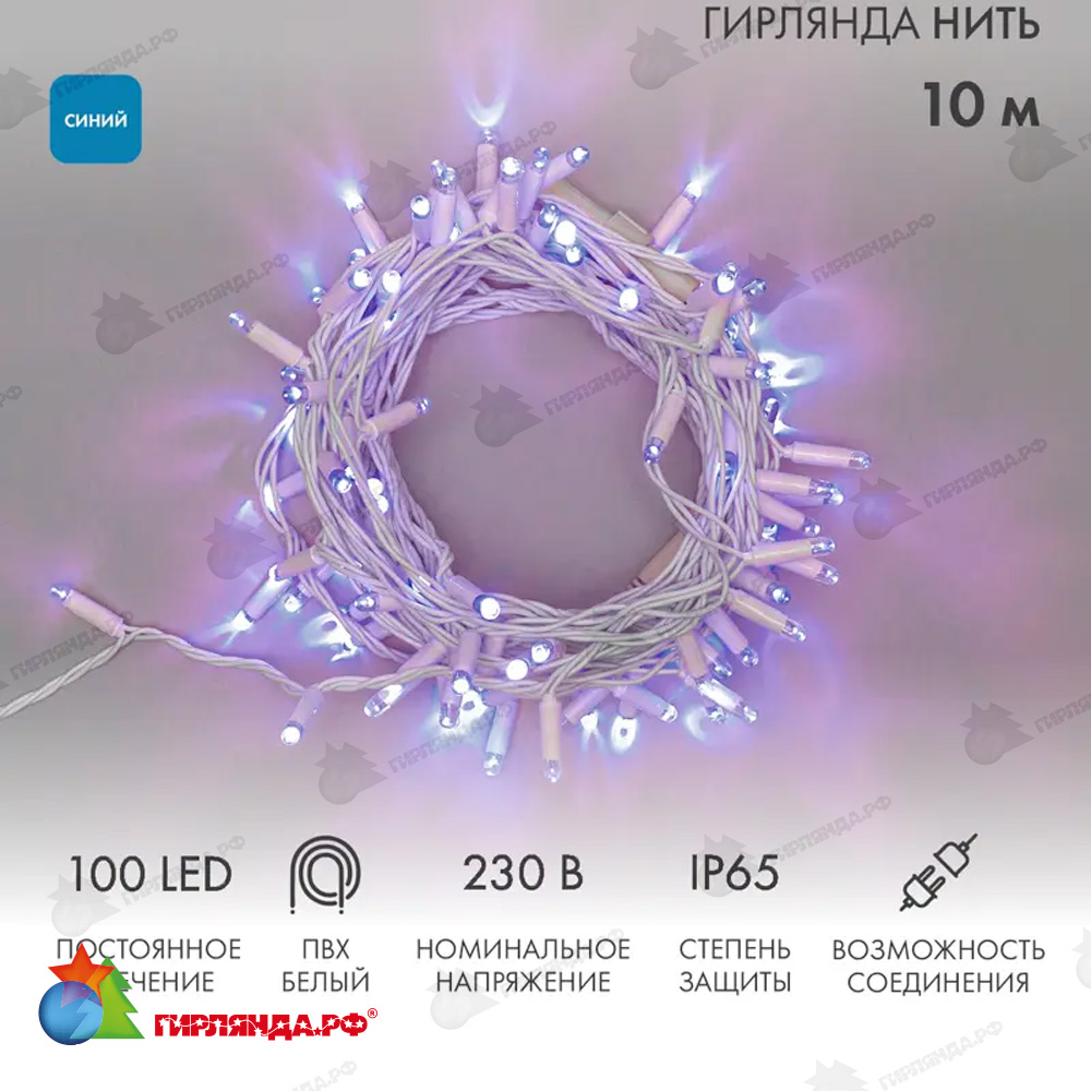 - ✅ Купить гирлянда светодиодная нить 10м 100 led синий белый пвх ip65 постоянное свечение 230в соединяется 14-2253 в интернет-магазине недорого