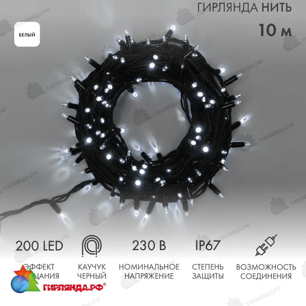 - ✅ Гирлянда светодиодная Нить 10м 200 Led Холодный Белый черный каучук IP67 эффект мерцания 230В соединяется 14-2288 купить в Москве