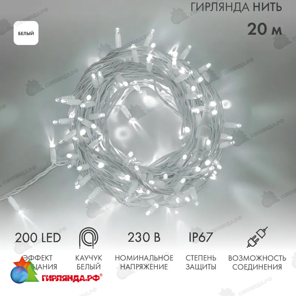 - ✅ Гирлянда светодиодная Нить 20м 200 Led Холодный Белый каучук IP67 эффект мерцания 230В соединяется 14-2297 – цена 6947.1 руб.